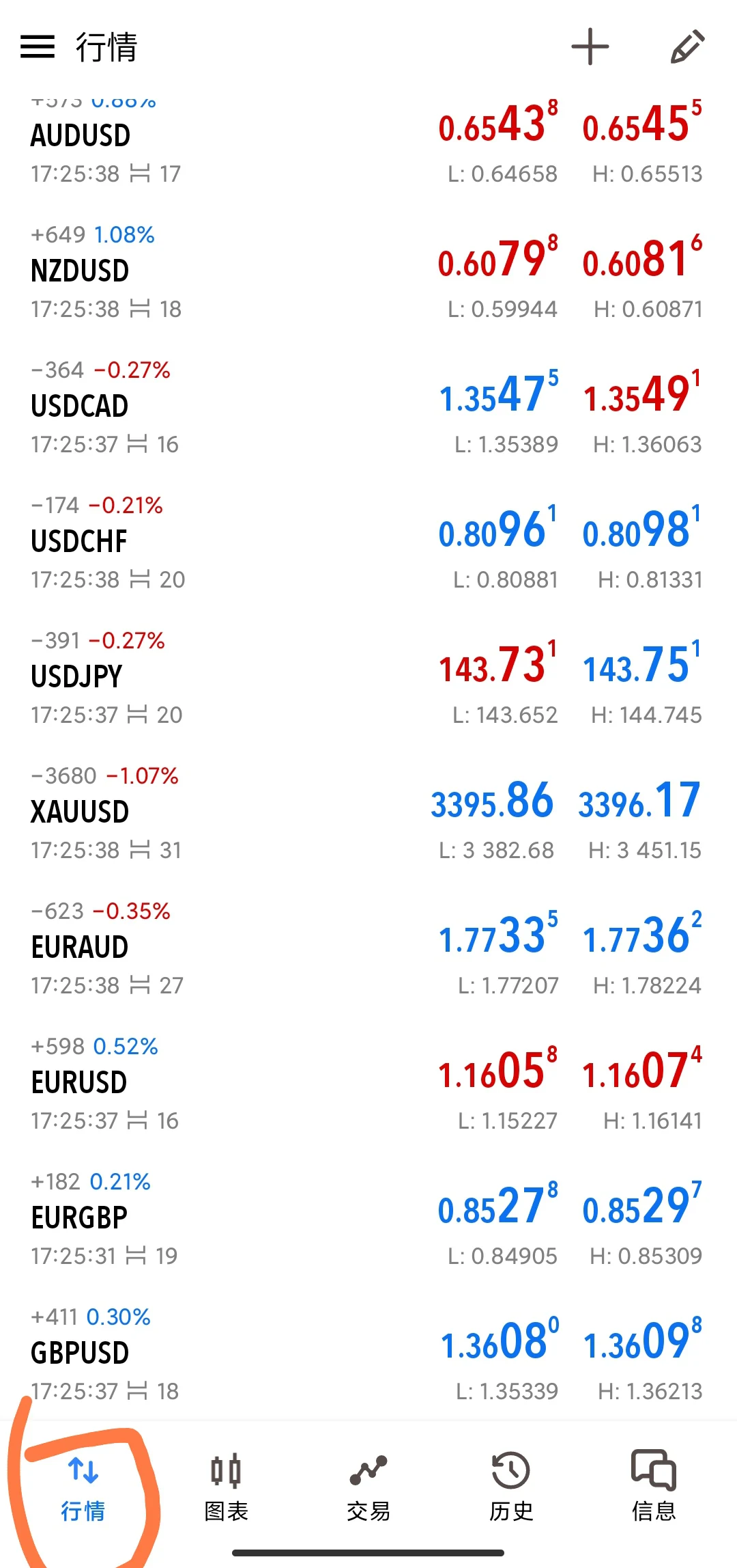 5. 若填写信息正确,登录成功后可以在下方菜单栏切换查看报价行情